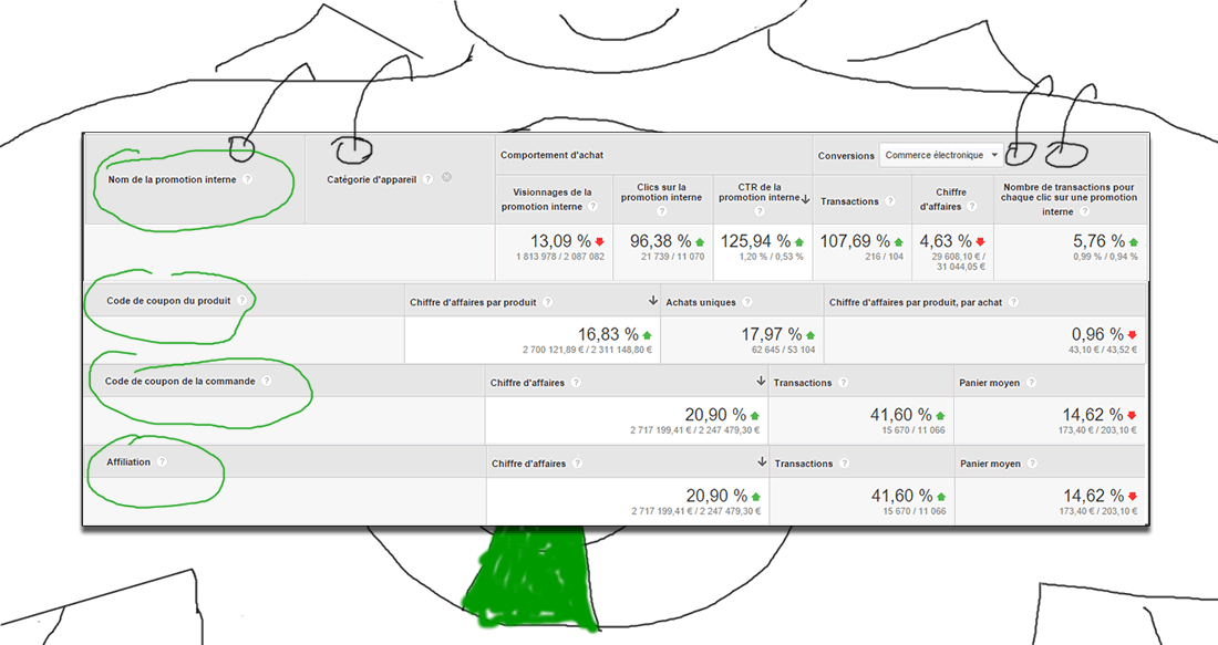 Actuellement, le suivi e-commerce classique de GA/UA vous livre des informations post-achat. L’e-commerce amélioré apporte des informations supplémentaires sur le comportement d’achat des utilisateurs sur l’ensemble du site. Chaque étape du processus de transaction est suivie et pas seulement la page de confirmation de paiement. Les mesures e-commerce améliorées vous permettent de vous concentrer sur la tendance générale ou bien de zoomer sur un segment ou produit particulier pour identifier des opportunités d’optimisation.