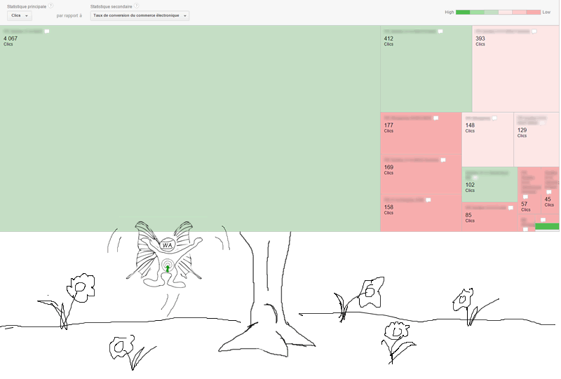 Pour ceux qui ne l’auraient pas encore vu, depuis fin 2014, un arbre très feuillu a poussé dans vos rapports Google Analytics, l’AdWords Treemaps (« Acquisition > AdWords »). On le distingue très facilement grâce à l’emboîtement de ses nombreuses feuilles rectangulaires de différentes tailles, de couleurs allant du vert au rouge.