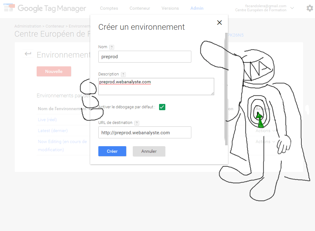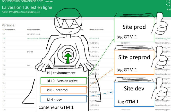 Cet exemple est parfait pour vous présenter la fonctionnalité environnement de Google Tag Manager.