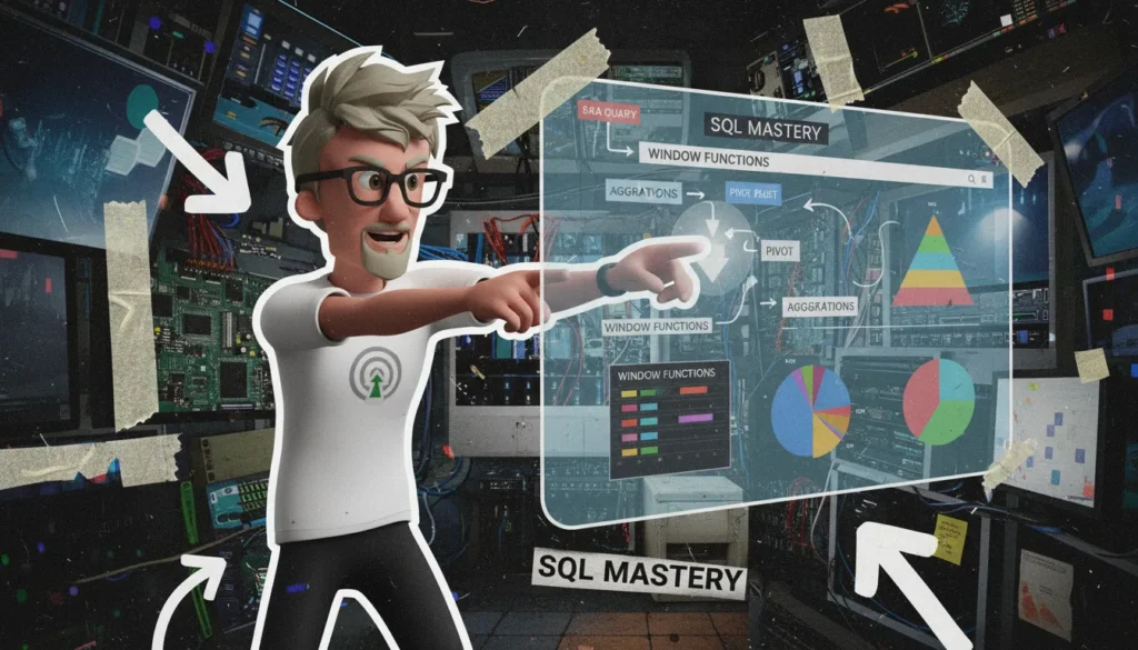 Les patterns-clés sont joins + filters, fonctions fenêtre, agrégations/grouping et pivoting, appliqués via SQL réutilisable. Ces schémas, démontrés par exercices d’entretien (StrataScratch) et la doc PostgreSQL, structurent l’analyse et facilitent la réutilisabilité des pipelines analytiques.